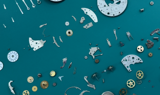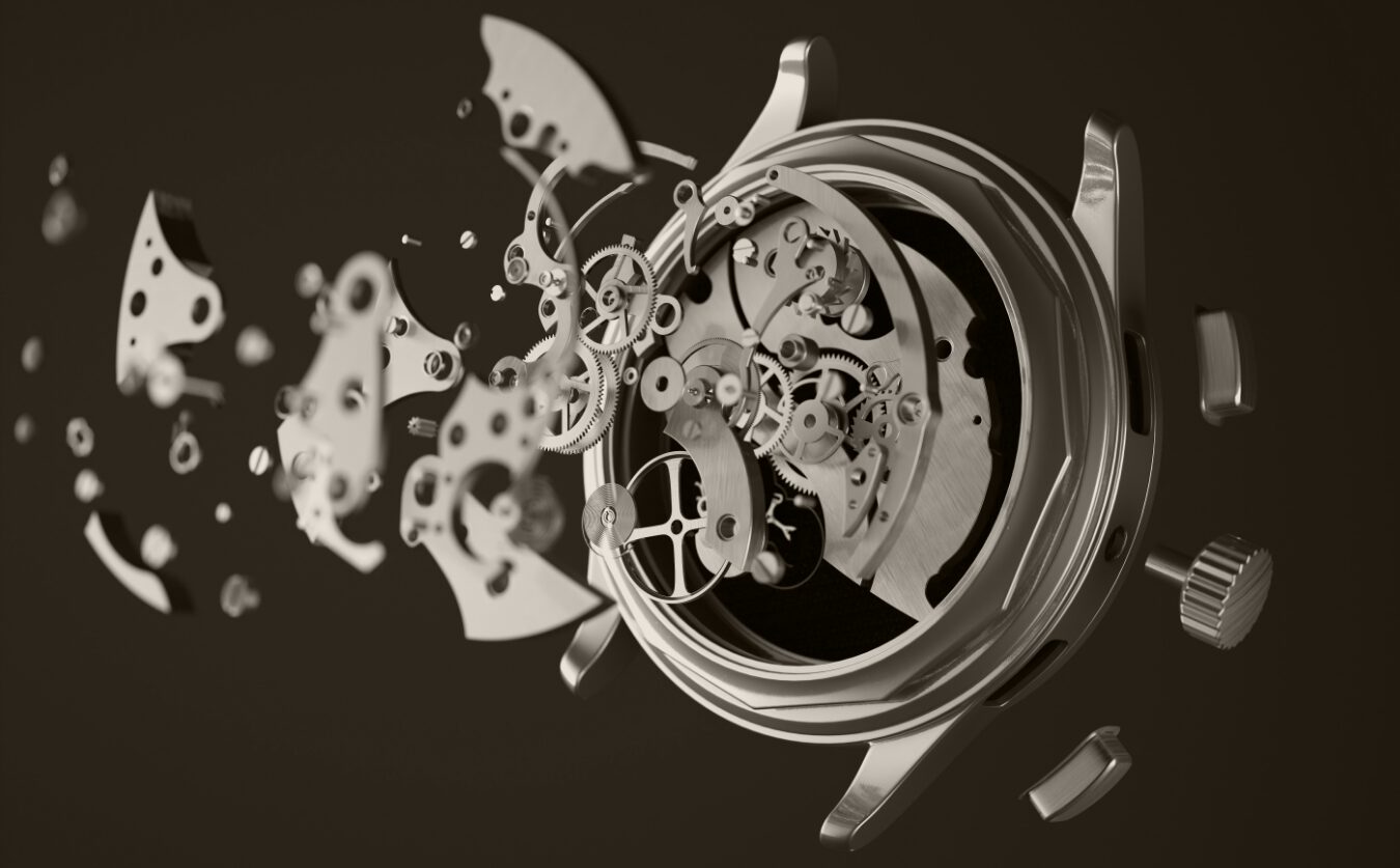 腕時計のムーブメントは数十個から数百個の部品で構成されており、その一つ一つが1/100㎜単位で製造/組み立てられています。