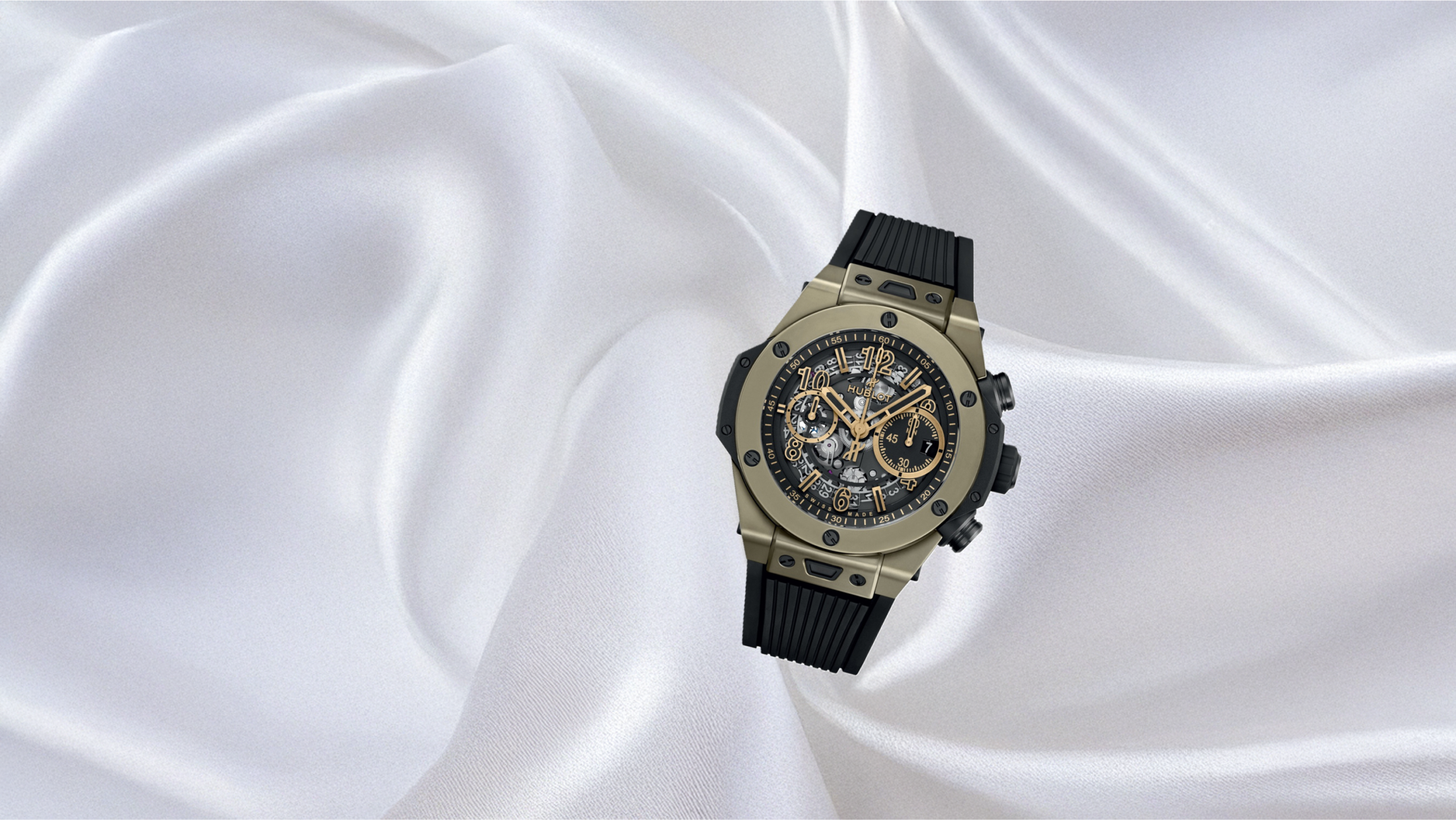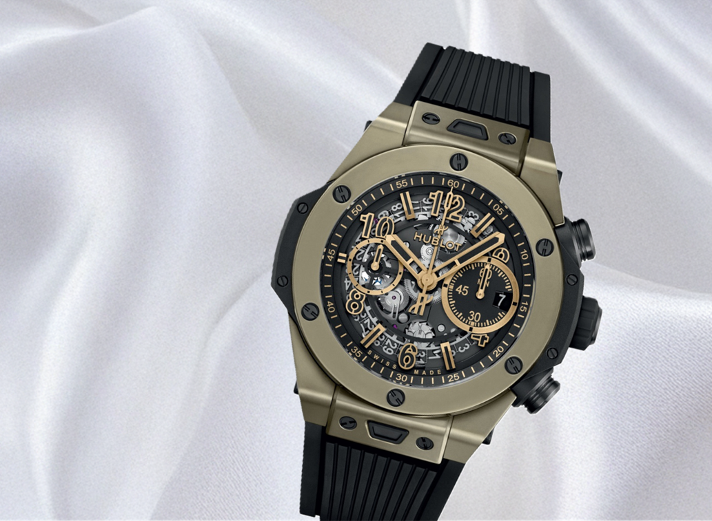 ウブロ(HUBLOT)は、1980年にスイスで創業された高級時計ブランドで、「異なる素材やアイデアの融合 (The Art of Fusion)」をコンセプトに革新的な時計を製造しています。特に、高級時計にラバーストラップを組み合わせたパイオニアとして知られています。